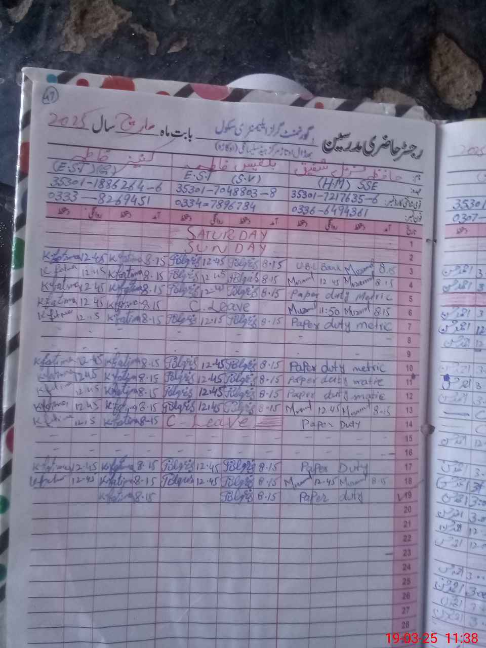 | 35**** | Ha**** Mu**** Sh**** | 6 | 2 | 0 | 0 | 0 | 0 | 0 | 0 | 0 | 0 | 0 | Exam Duty |