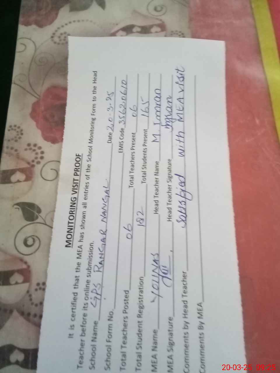 | EMIS Code: 35620610 | Name of School: GPS RANGAR NANGAL | |||