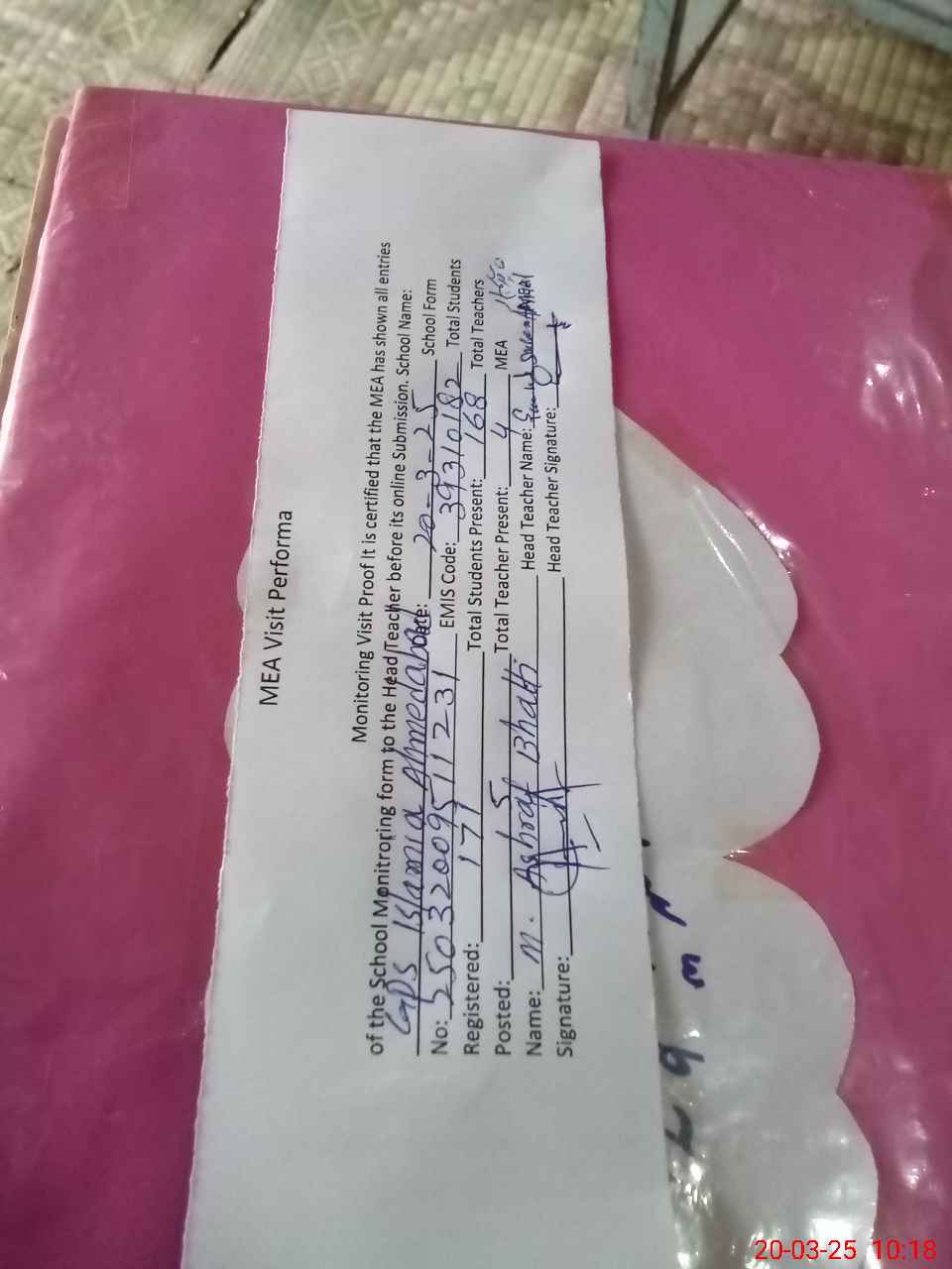 | EMIS Code: 39310182 | Name of School: GPS ISLAMIA AHMED ABAD | |||
