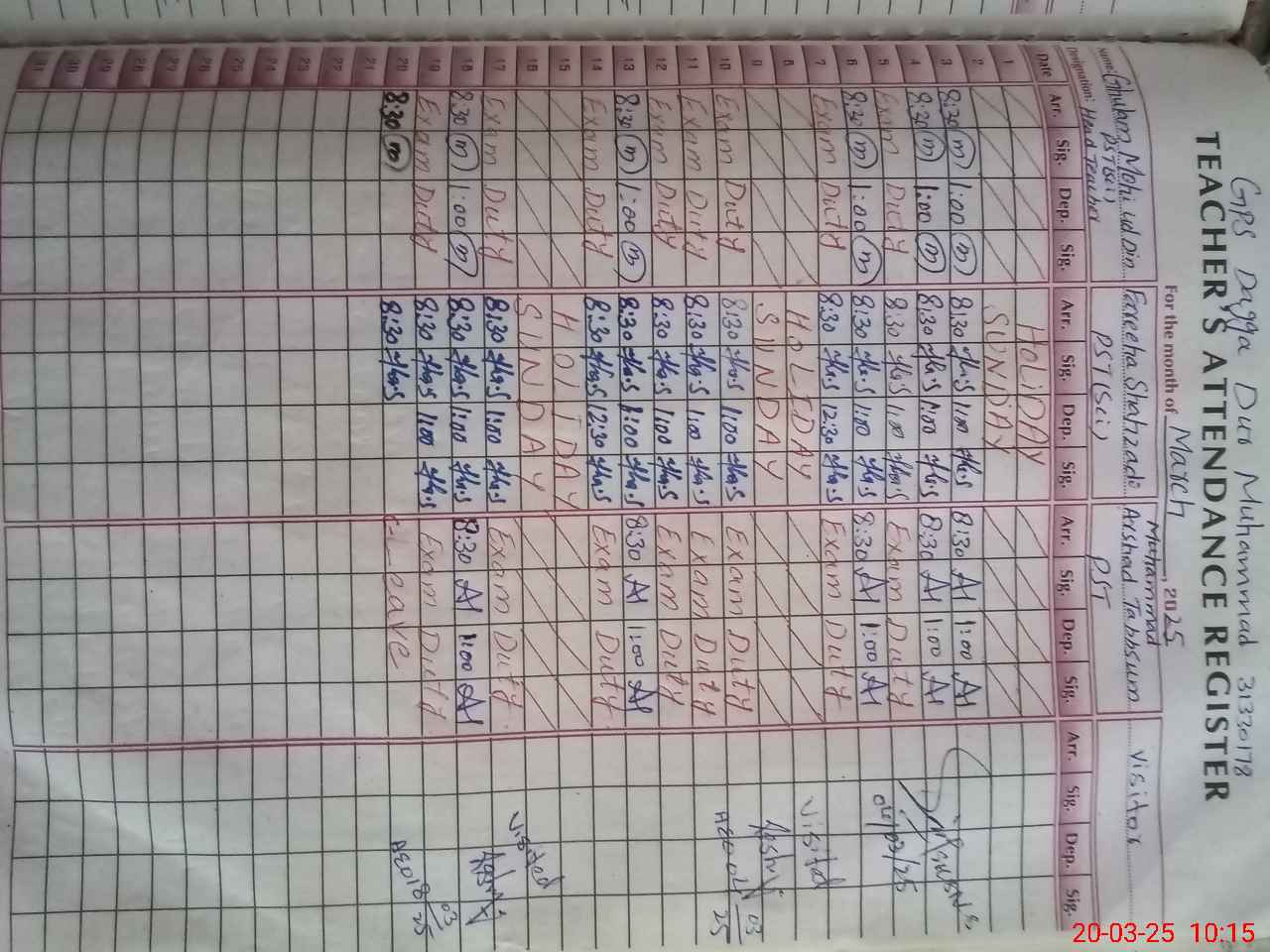 | Remarks (Use Separate Page if Required): Daily attendance of teachers is not marked on SIS | |||||