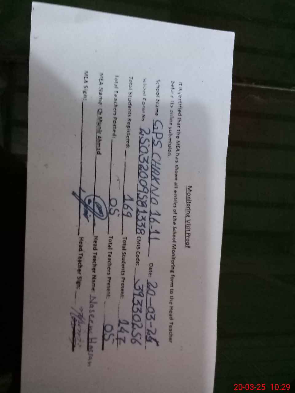 | EMIS Code: 39330256 | Name of School: GPS CHAK NO 16/1L | |||
