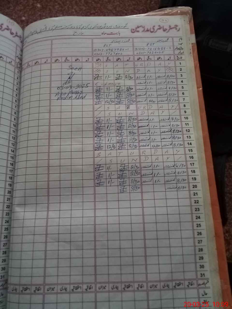 | Name: Mu**** Ma**** Designation: (School Headmaster's/Headmistress's) PST/PTC/JV Phone/Cell Number: 03**** |