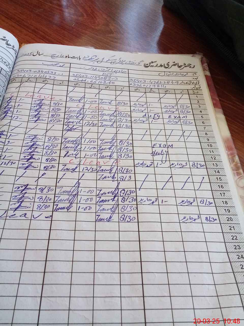 | 35**** | Mu**** Ja**** Iq**** | 1 | 1 | 0 | 0 | 0 | 0 | 0 | 0 | 0 | 0 | 0 | Exam Duty |