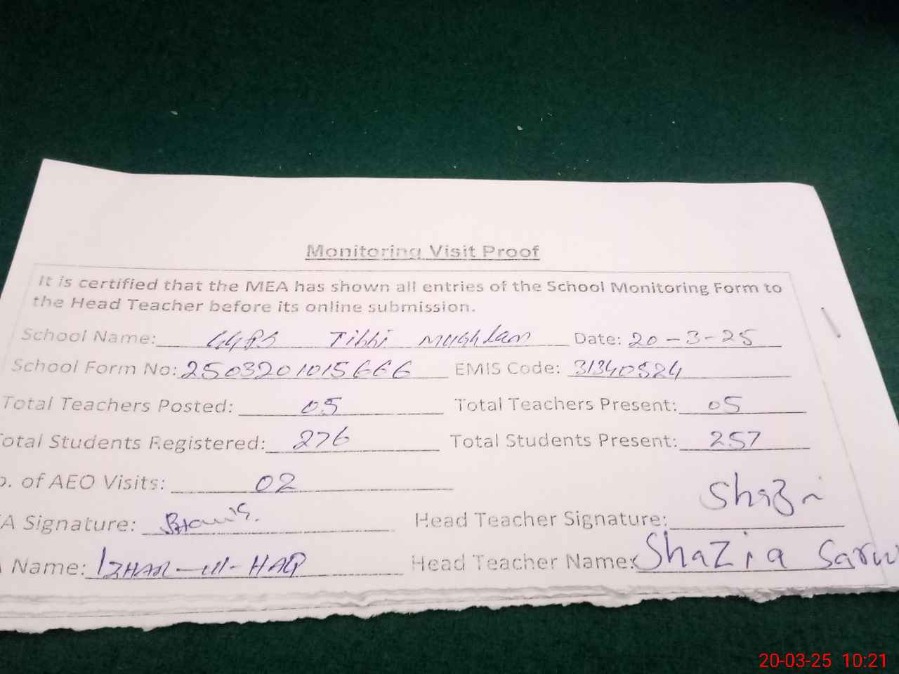 | EMIS Code: 31340524 | Name of School: GGPS TIBBI MUGHALAN | |||