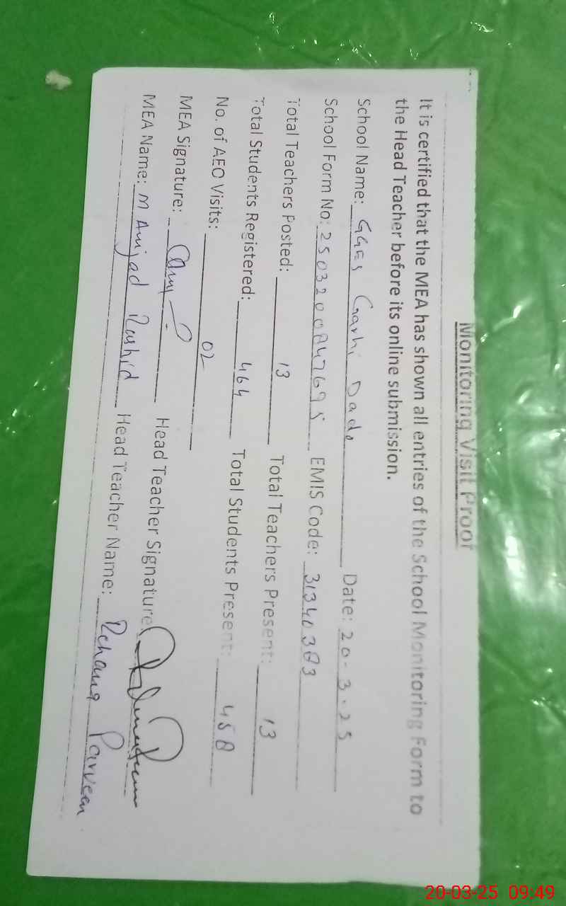 | EMIS Code: 31340383 | Name of School: GGES GHARI DADO | |||