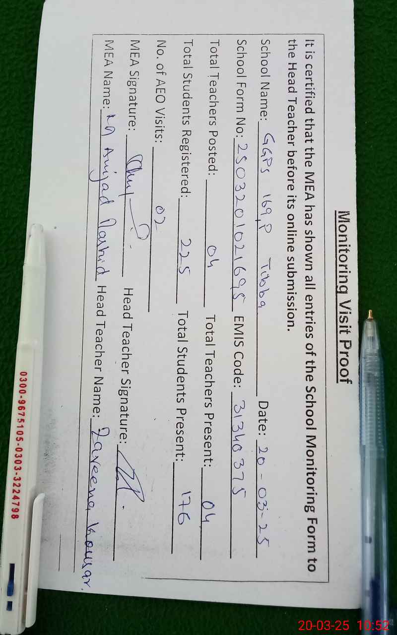 | EMIS Code: 31340375 | Name of School: GGPS 169/P TIBBA | |||