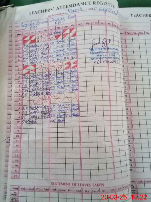 | Name: Sa**** Pa**** Designation: (School Headmaster's/Headmistress's) PST/PTC/JV Phone/Cell Number: 03**** |