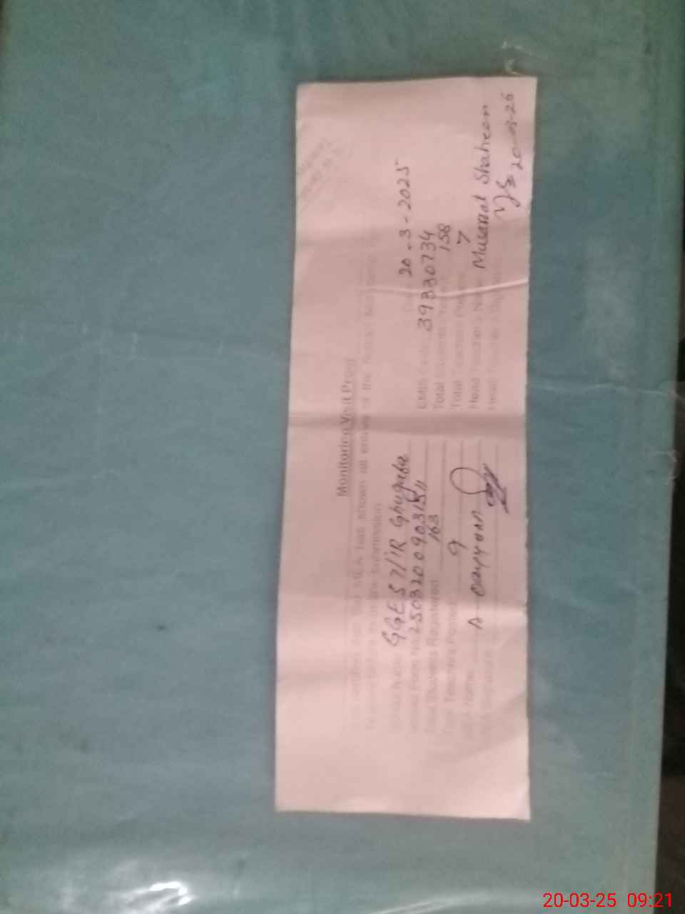 | Monitoring Date: 20-03-2025 | Start Time: 20-03-2025 09:03 AM | End Time: 20-03-2025 09:21 AM | Name of MEA: AB**** QA**** | |