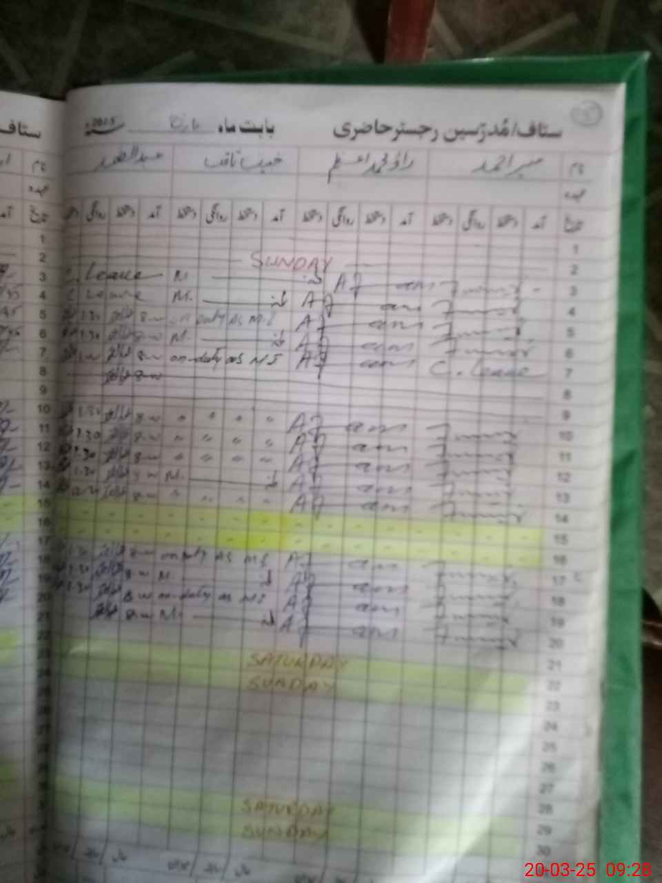 | CNIC | Full Name | Designation | R/C | Absence During Last Calender Month |