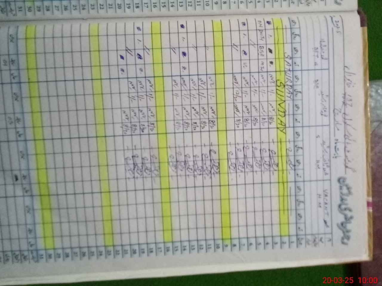 | 36**** | Sy**** Ab**** Ta**** | 3 | 1 | 0 | 0 | 0 | 0 | 0 | 0 | 0 | 0 | 0 | Exam Duty |