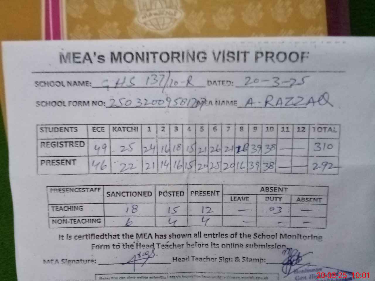 | EMIS Code: 36440035 | Name of School: GHS 137/10-R, JAHANIAN | |||