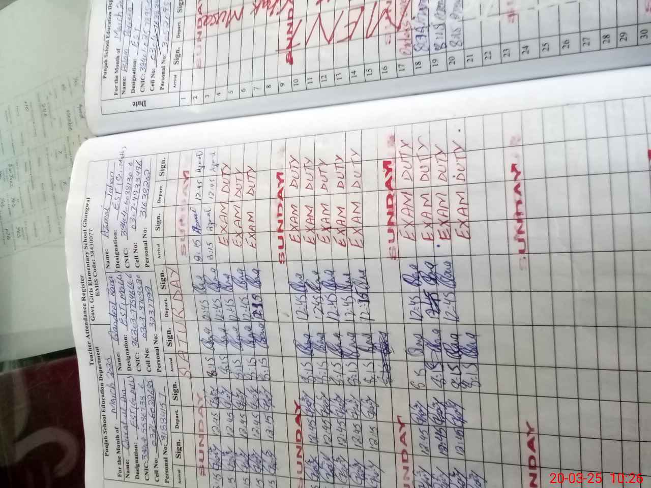 | 38**** | Az**** Ja**** | Regular | 2 | 0 | 0 | 0 | 0 | 0 | 0 | 0 | 2 | Exam Duty | |