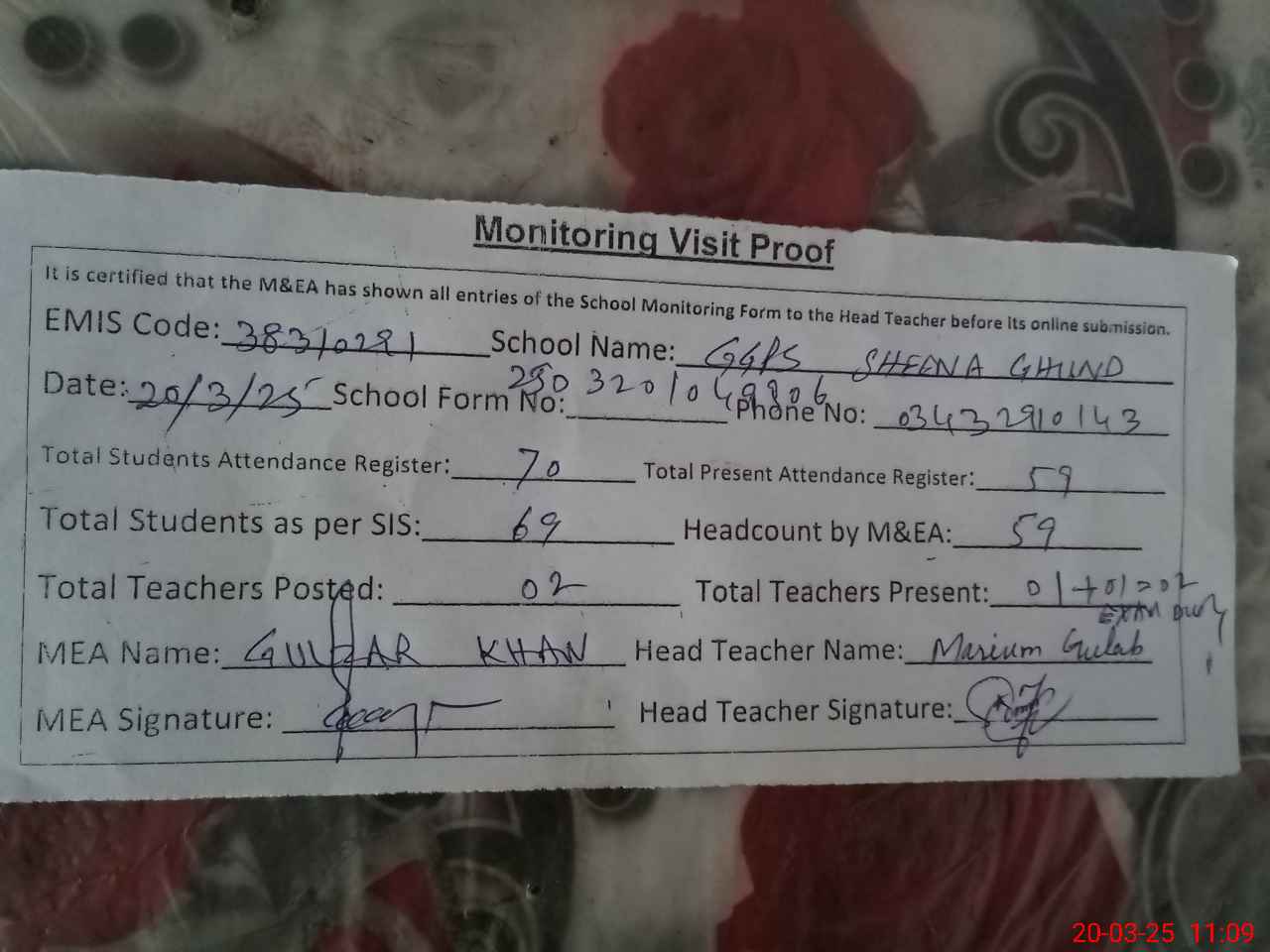 | EMIS Code: 38310291 | Name of School: GGPS SHEENA GHUND | |||