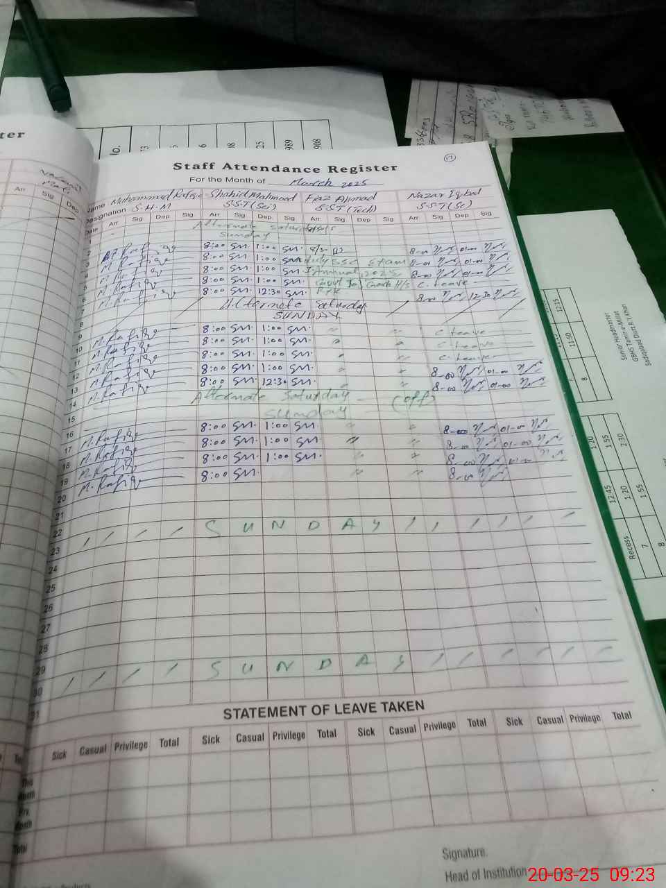 | 31**** | Sa**** Hu**** | Regular | 0 | 0 | 0 | 0 | 0 | 0 | 0 | 0 | 0 | Exam Duty | |