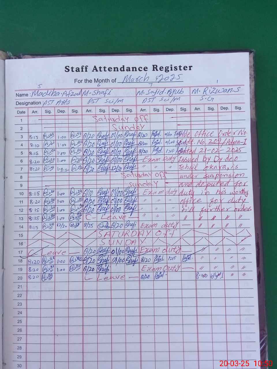 | 00**** | Ab**** Sa**** | SG | Regular | 0 | 0 | 0 | 0 | 0 | 0 | 0 | 0 | 0 | Absent (Un-Authorized) |