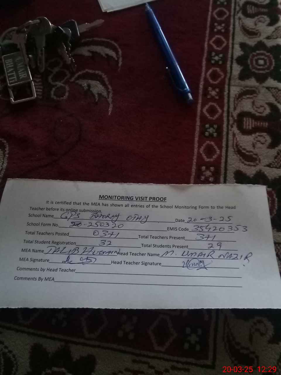| EMIS Code: 35420353 | Name of School: GPS BHORAY OTHEY | |||