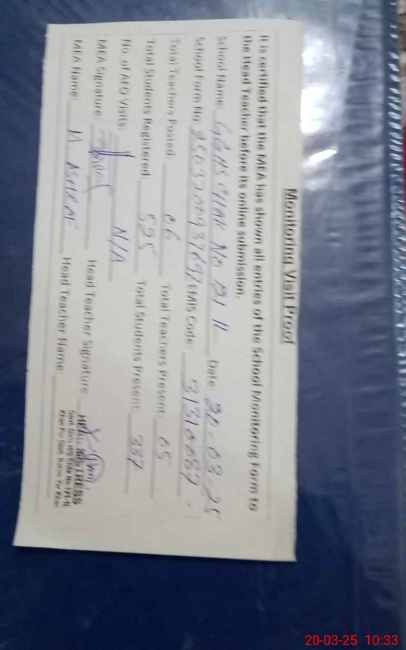 | Certified that this School was Inspected by the Undersigned MEA/DMO Today and the Information Stated Above is as Per Record. | |||||