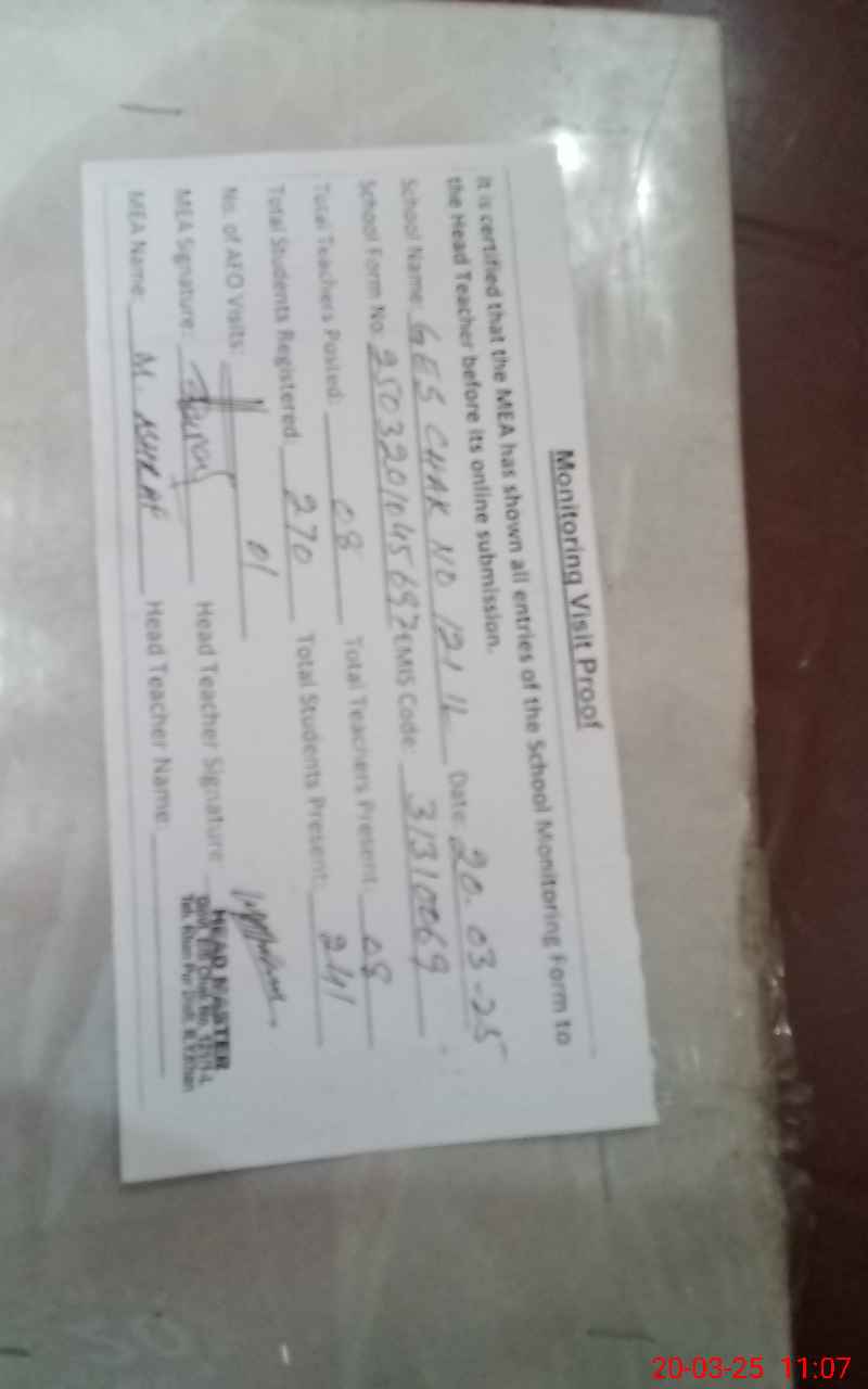 | EMIS Code: 31310069 | Name of School: GES CHAK NO 121/1-L | |||