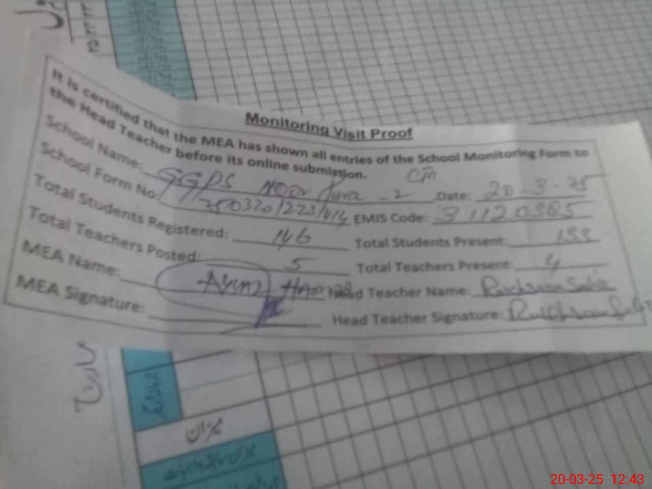| EMIS Code: 31120385 | Name of School: GGPS NOOR PURA NO. 2 | |||