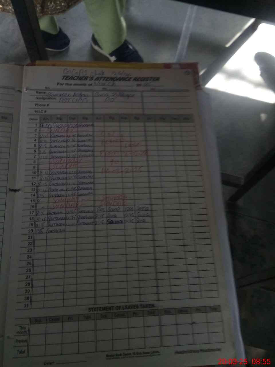 | Name: SA**** AS**** Designation: (School Headmaster's/Headmistress's) PST Phone/Cell Number: 03**** |
