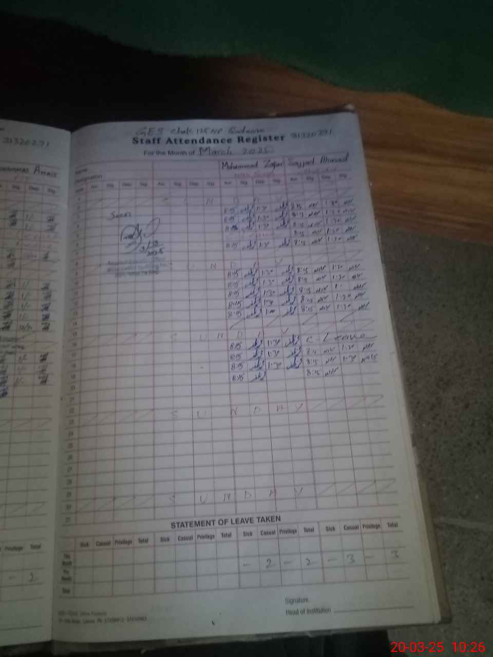 | 31**** | Mu**** Ka**** Ma**** | 3 | 1 | 0 | 0 | 0 | 0 | 0 | 0 | 0 | 0 | 0 | Absent (Un-Authorized) |