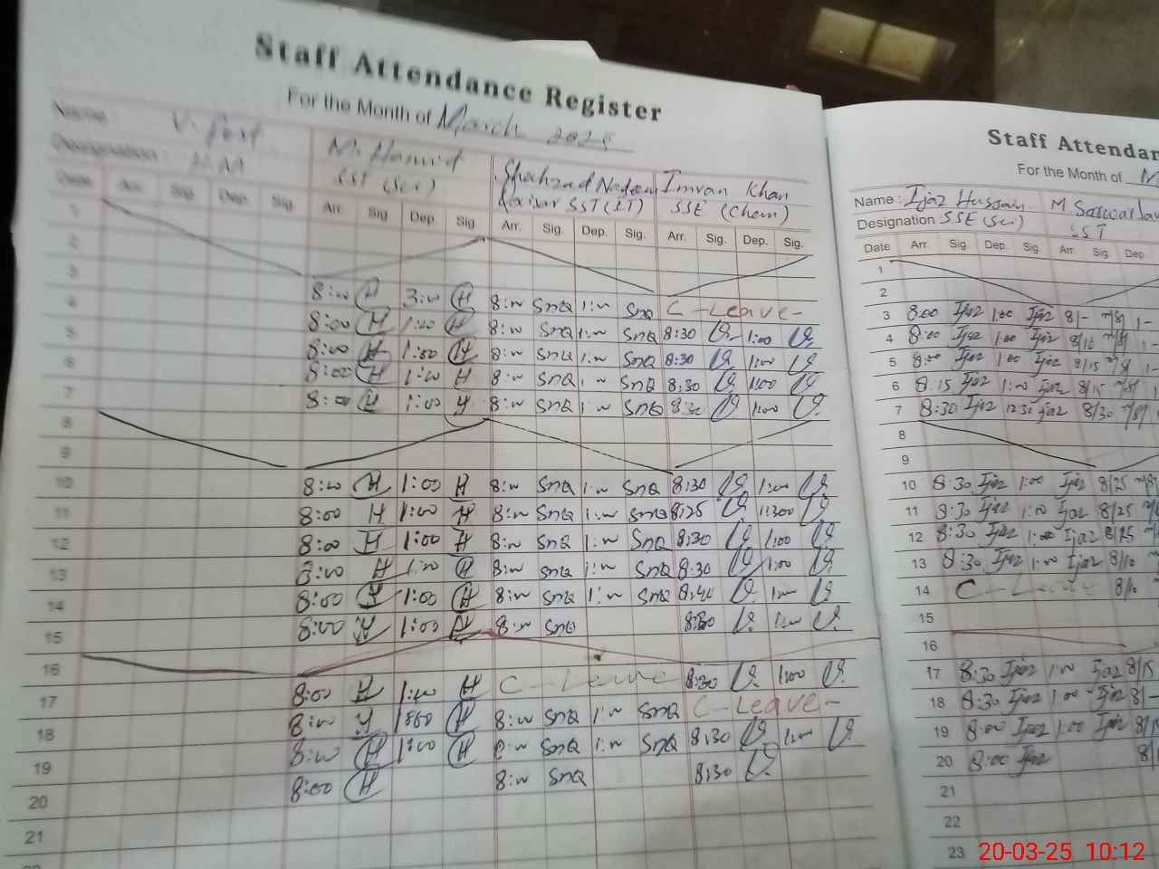 | CNIC | Full Name | Designation | R/C | Absence During Last Calender Month |