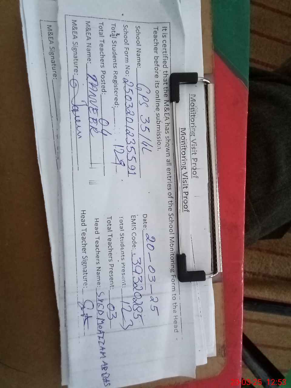 | EMIS Code: 39320285 | Name of School: GPS CHAK 35/4-L | |||