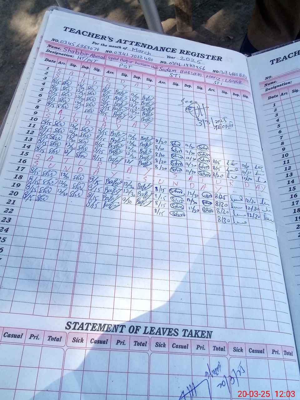 | Name: SH**** AH**** Designation: (School Headmaster's/Headmistress's) PST Phone/Cell Number: 03**** |