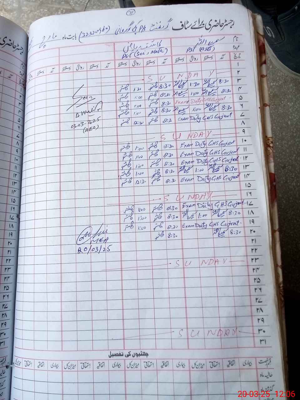 | CNIC | Full Name | Designation | R/C | Absence During Last Calender Month |