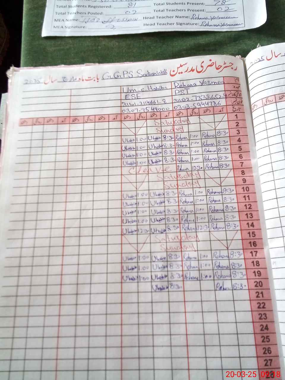 | Name: RE**** YA**** Designation: (School Headmaster's/Headmistress's) PST Phone/Cell Number: 03**** |