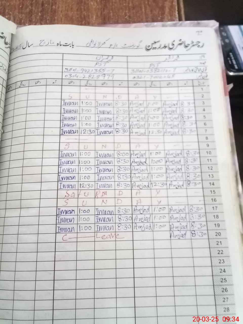 | 31**** | Mu**** Im**** | ESE | Contract | 0 | 0 | 0 | 0 | 0 | 0 | 0 | 0 | 0 | Casual |
