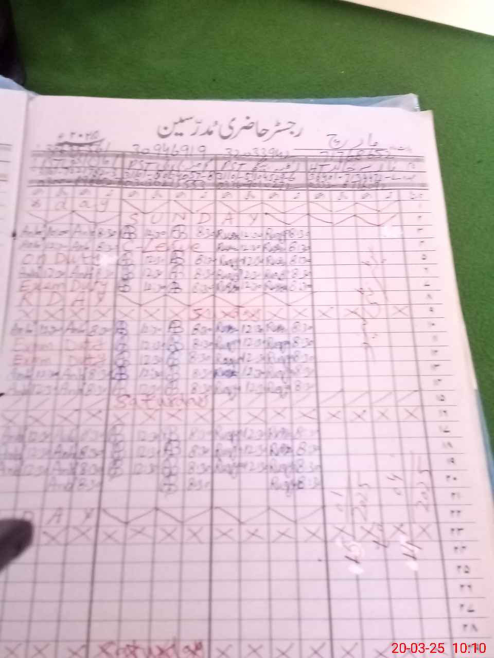 | CNIC | Full Name | Designation | R/C | Absence During Last Calender Month |