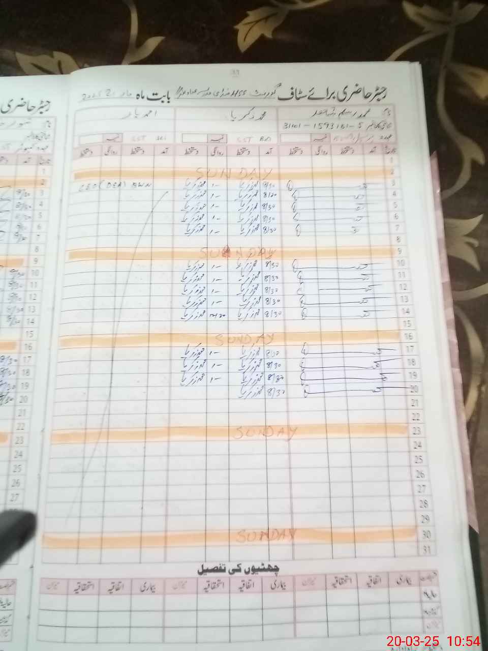 | CNIC | Full Name | Designation | R/C | Absence During Last Calender Month |
