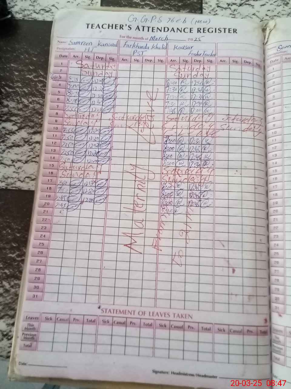 | 33**** | Fa**** Kh**** | Contract | 6 | 0 | 0 | 5 | 0 | 0 | 0 | 0 | 1 | Maternity | |