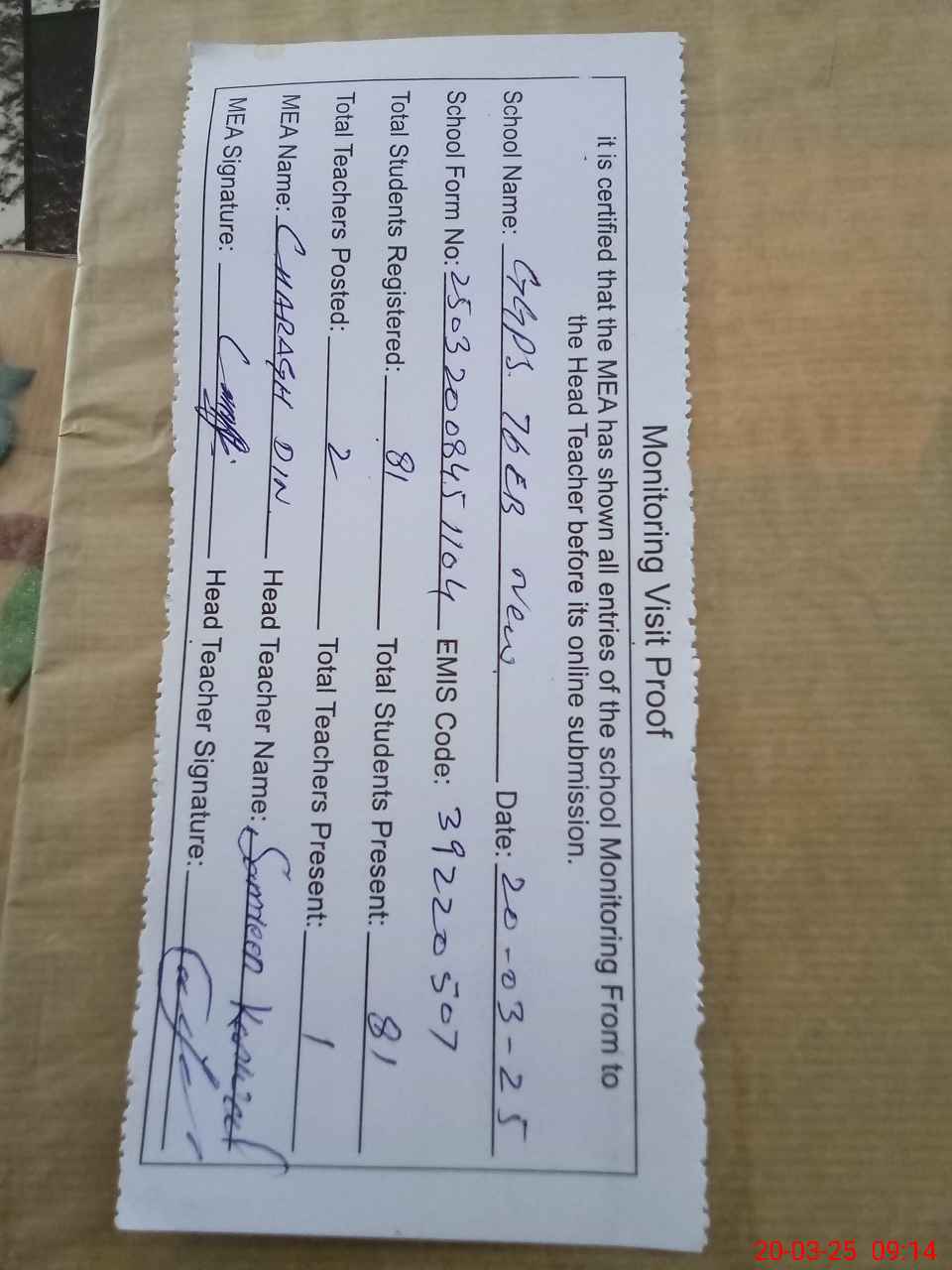 | EMIS Code: 39220507 | Name of School: GGPS CHAK NO. 76/EB (NEW) | |||