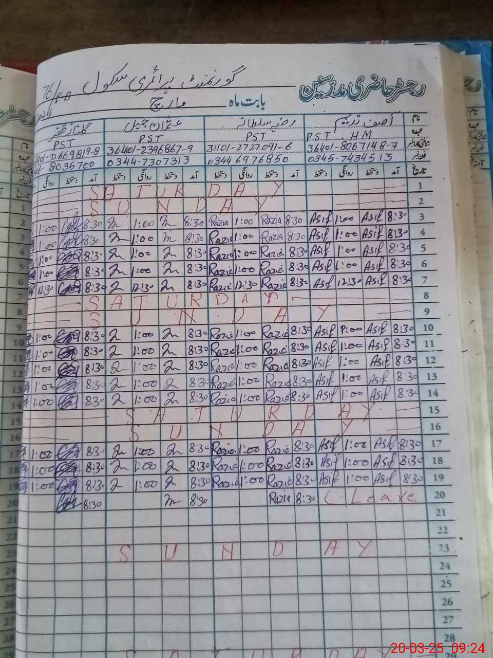 | Name: AS**** NA**** Designation: (School Headmaster's/Headmistress's) PST Phone/Cell Number: 03**** |
