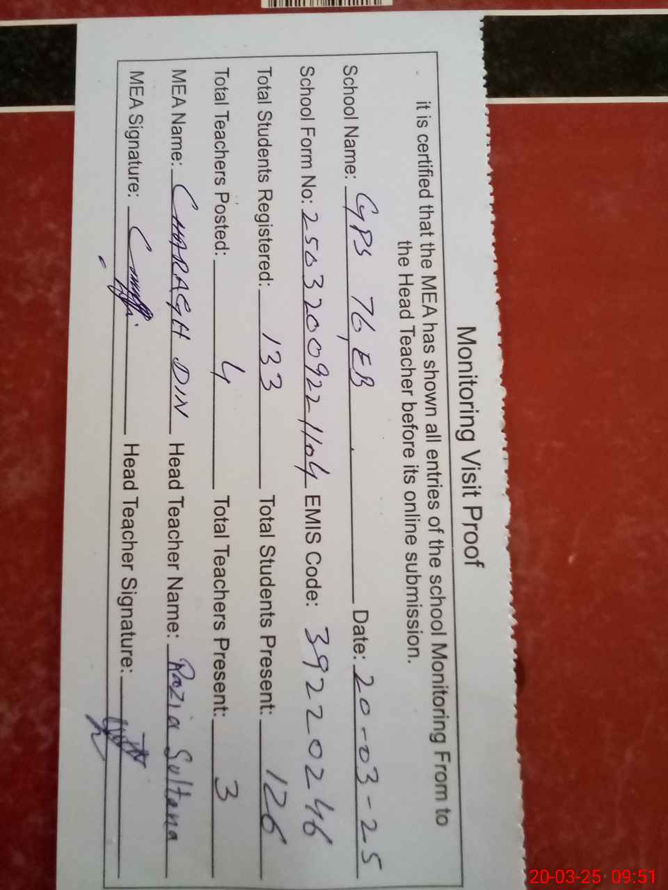 | EMIS Code: 39220246 | Name of School: GPS 76 EB | |||