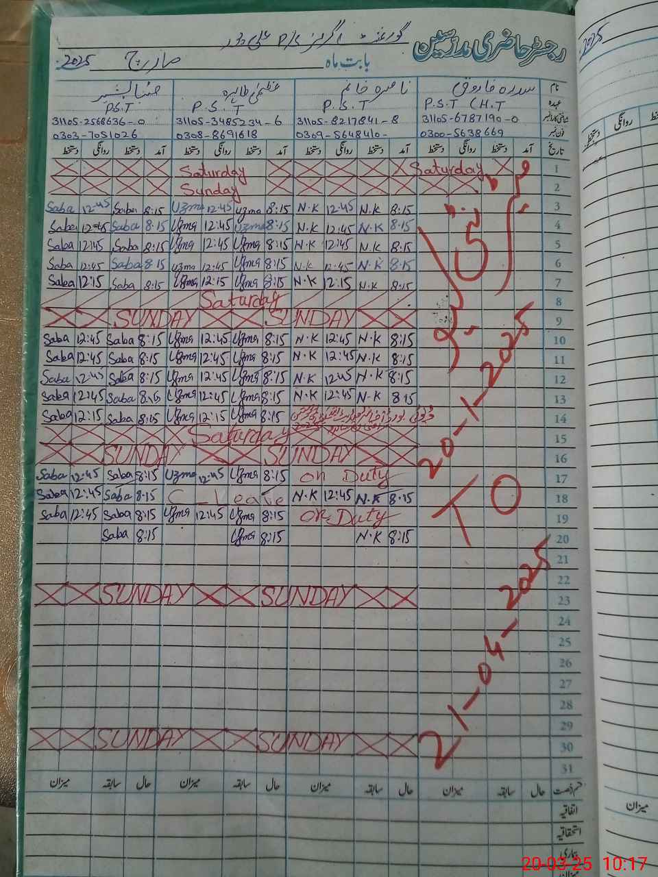 | 31**** | Ta**** Ah**** | 0 | 0 | 0 | 0 | 0 | 0 | 0 | 0 | 0 | Absent (Un-Authorized) | ||