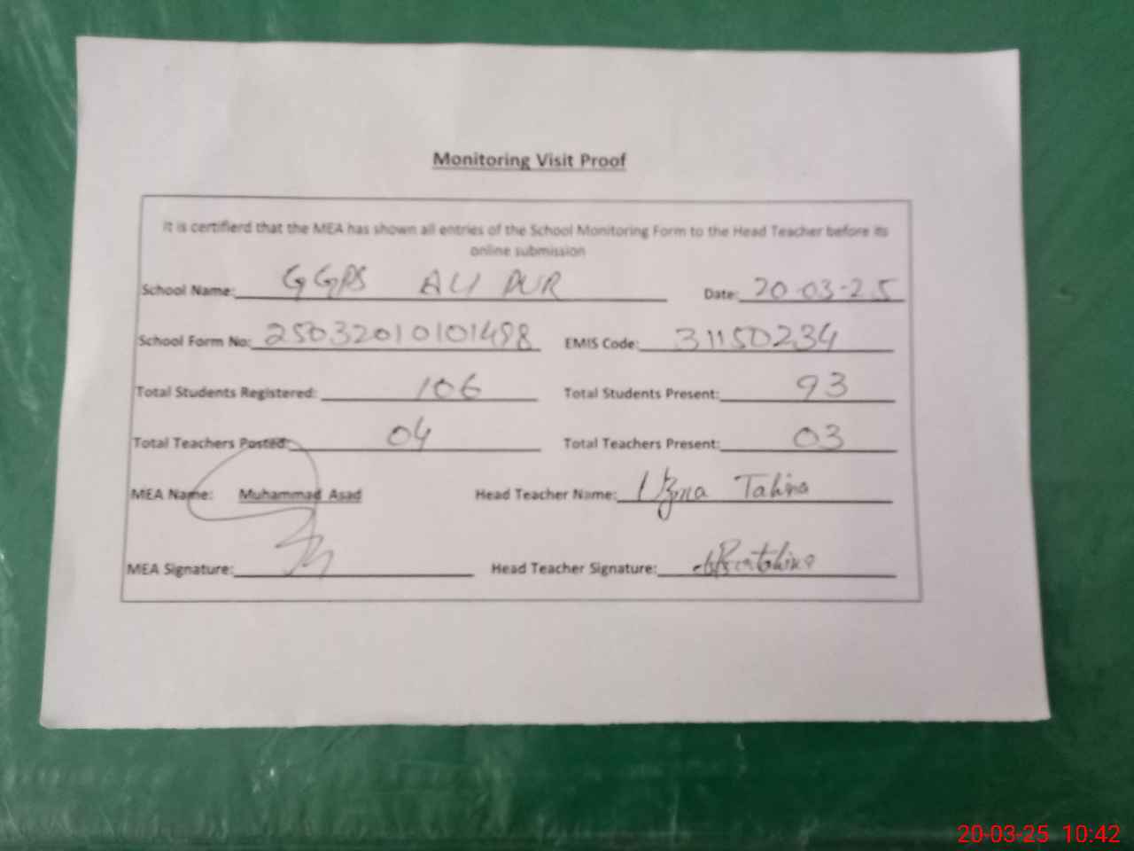 | EMIS Code: 31150234 | Name of School: GGPS ALI PUR | |||