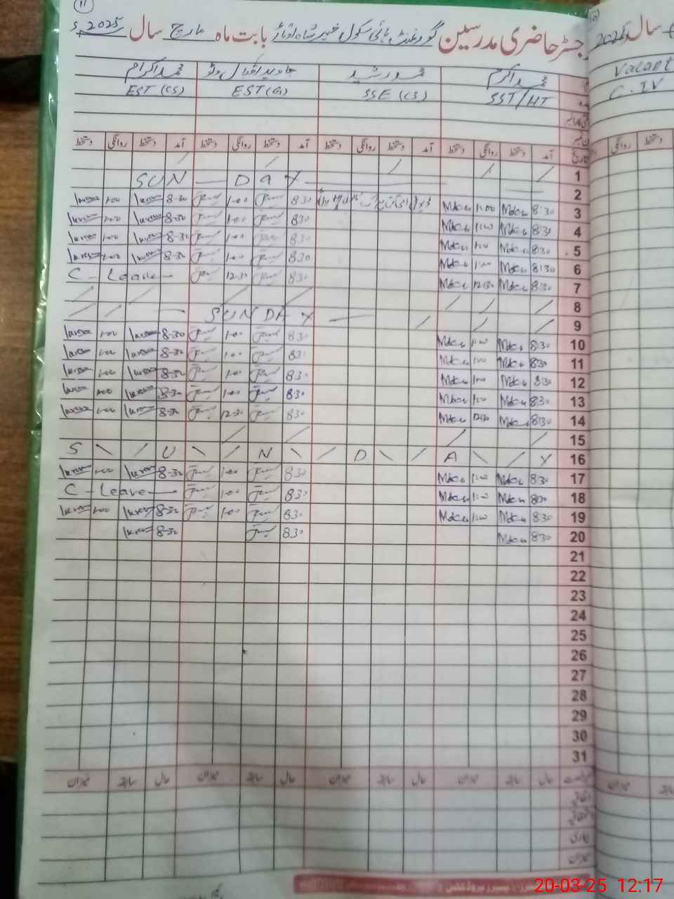 | 31**** | Mu**** Ra**** | 6 | 2 | 0 | 0 | 0 | 0 | 0 | 0 | 0 | 0 | 0 | Exam Duty |