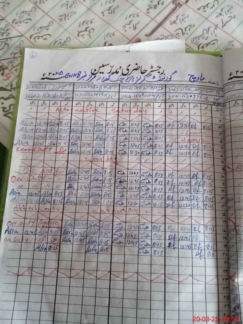 | 31**** | Ri**** Ma**** | PST | Regular | 3 | 0 | 0 | 0 | 0 | 0 | 0 | 0 | 3 | Exam Duty |