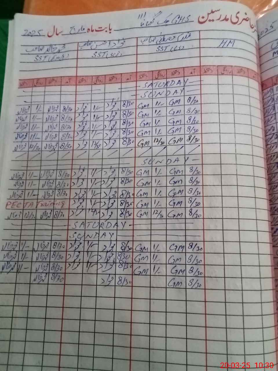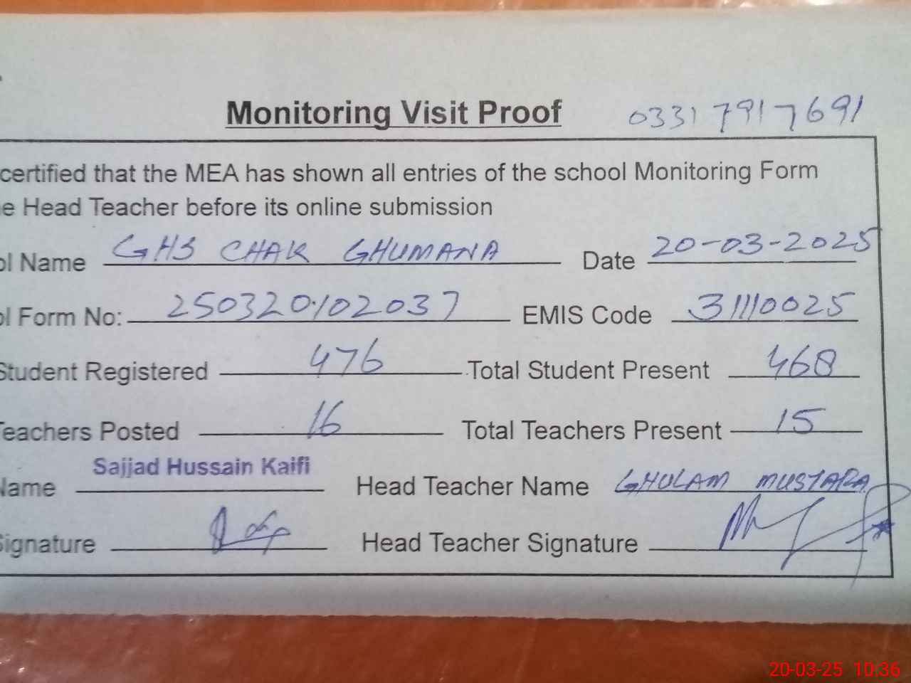 | EMIS Code: 31110025 | Name of School: GHS CHAK GHUMANA | |||