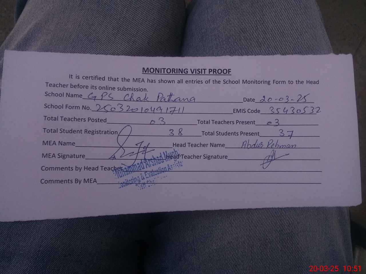 | EMIS Code: 35430532 | Name of School: GPS CHAK PATHANA | |||