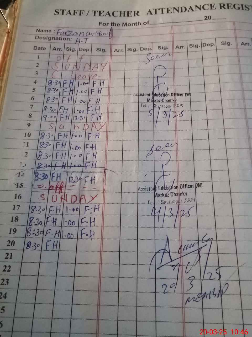 | CNIC | Full Name | Designation | R/C | Absence During Last Calender Month |