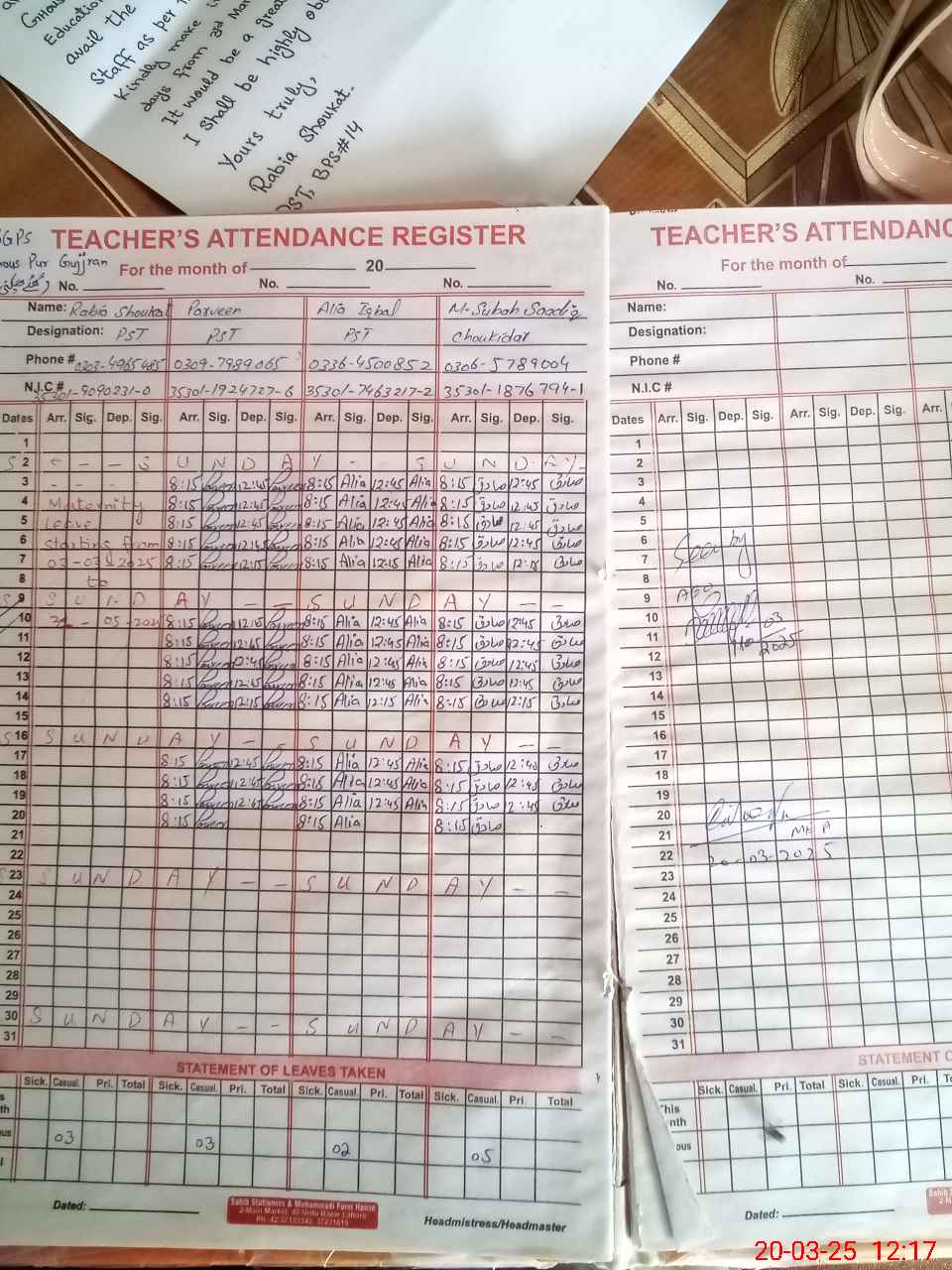 | 35**** | Ra**** Sh**** | PST | Regular | 0 | 0 | 0 | 0 | 0 | 0 | 0 | 0 | 0 | Maternity |