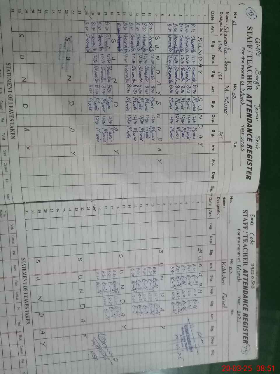 | Name: SH**** IR**** Designation: (School Headmaster's/Headmistress's) PST Phone/Cell Number: 03**** |