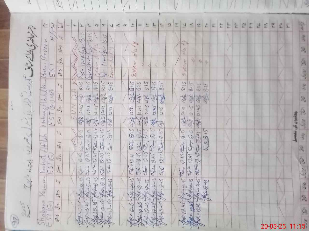 | 31**** | Ba**** Pe**** | EST | Regular | 0 | 0 | 0 | 0 | 0 | 0 | 0 | 0 | 0 | Exam Duty |