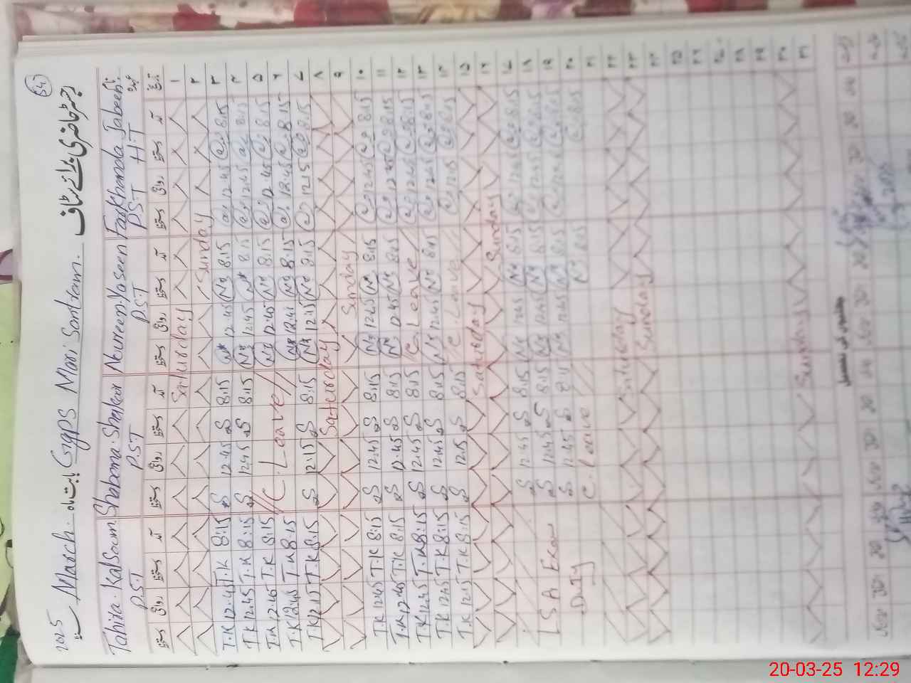 | 31**** | Ta**** Ka**** | PST | Regular | 0 | 0 | 0 | 0 | 0 | 0 | 0 | 0 | 0 | Exam Duty |