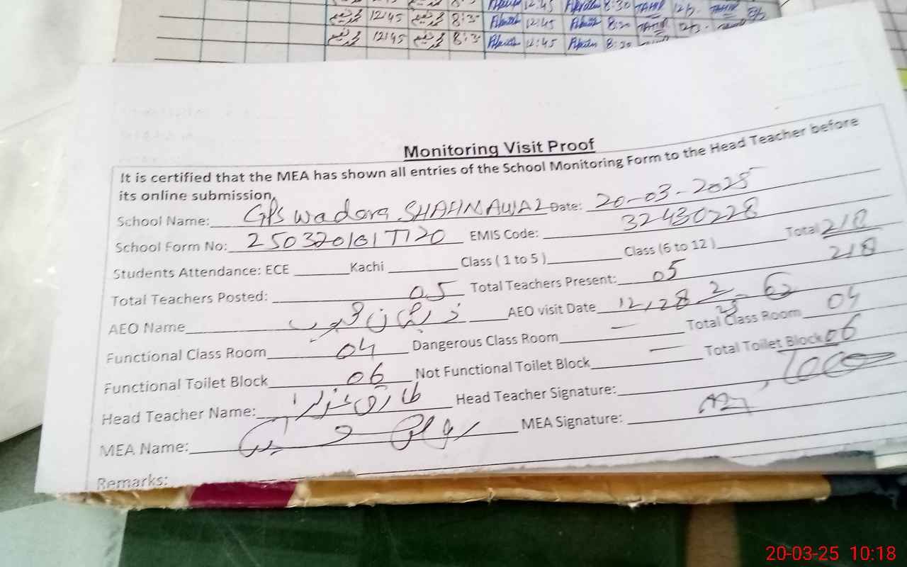 | EMIS Code: 32430228 | Name of School: GPS WADERA SHAH NAWAZ KHAN | |||