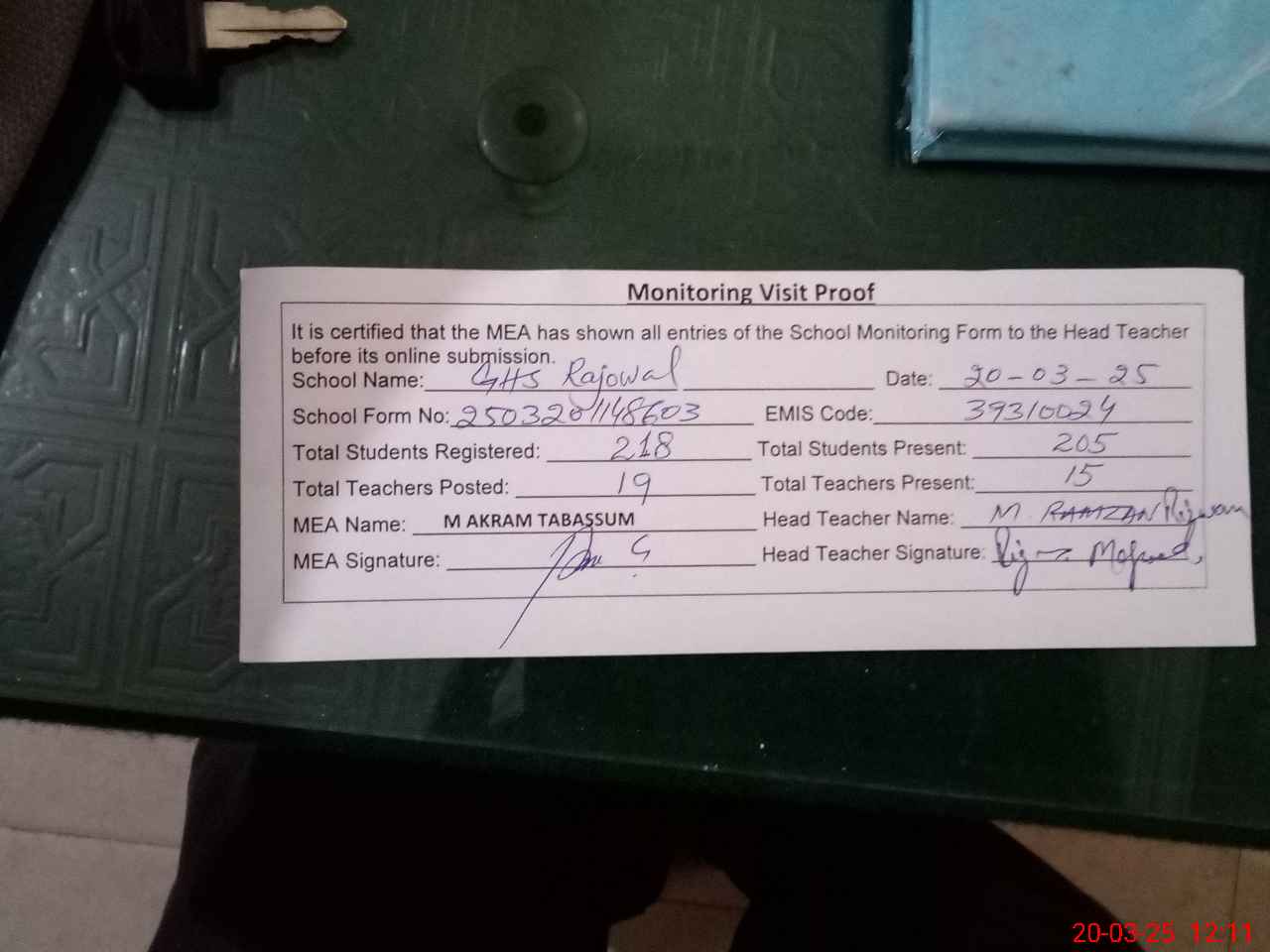 | EMIS Code: 39310024 | Name of School: GHS RAJOWAL | |||